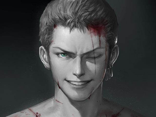 而在這張頭像裡,雖然看不出發色,但索大那標誌性的獨眼與疤痕,加上那冷峻霸道的笑容以及那標誌性的耳飾,還是相當傳神的,尤其是那眼神裡的綠色瞳仁,將索大的霸氣展現得淋漓盡致。