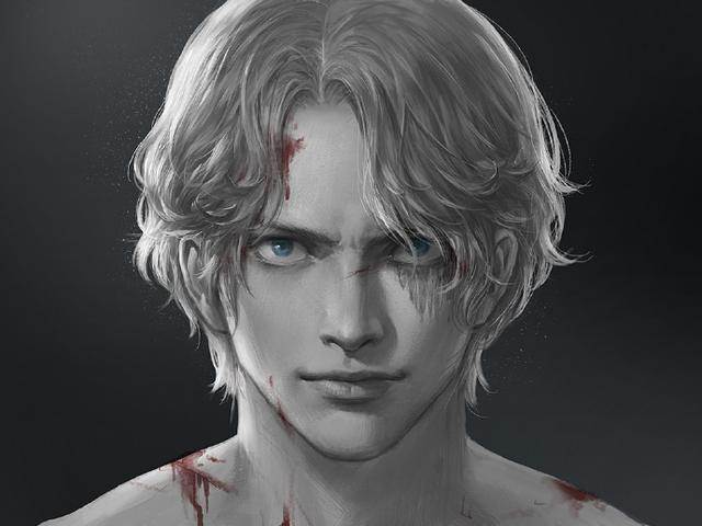 而畫面裡,薩博波浪般的金色短髮,左眼的傷疤,冰藍色的瞳孔,還有那嚴肅又不缺自信的表情,讓他的形象變得活靈活現,躍然紙上。