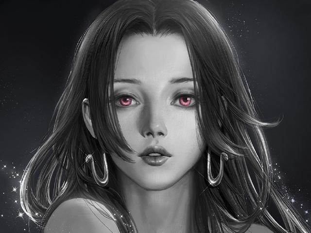 而在肖像中,那一頭烏黑的長髮,姬髮式的髮型,正在發動能力的粉色雙眸,標誌性的蛇型耳環,還有那一臉魅惑的表情,簡直要被她石化了好麼!